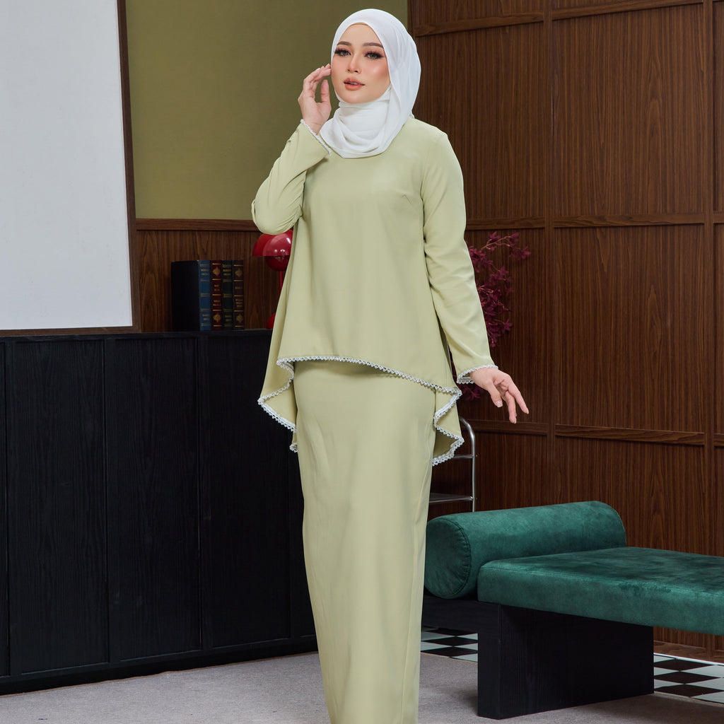 Mahika Kurung Tapered Set - Matcha