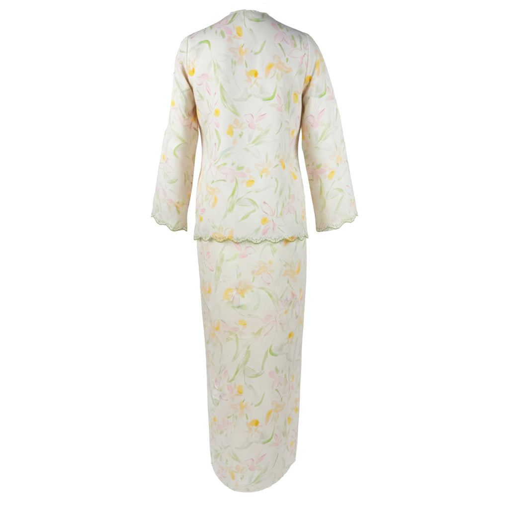 Detura 3.0 Embroidery Kurung Set - Beige Yellow Floral (PREORDER)