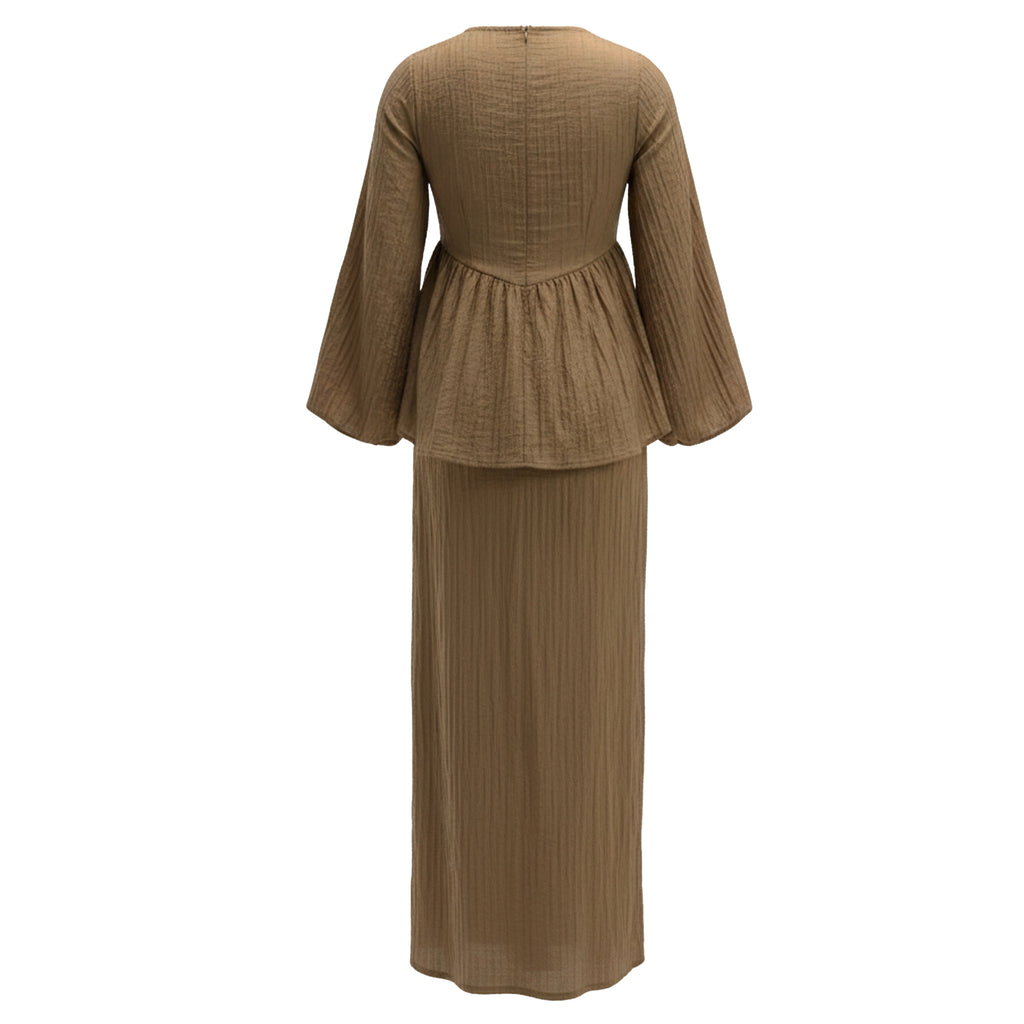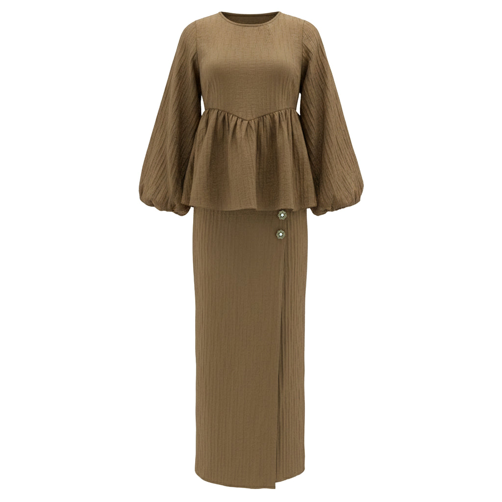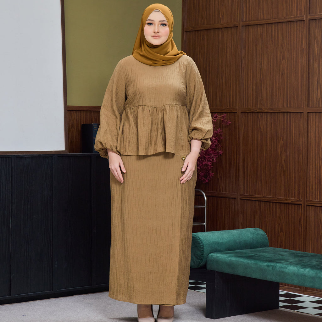 Twisha Kurung Fr Overlap Set - Bronze